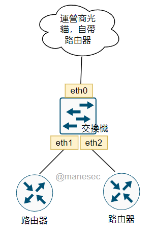 要想做成上面的測試,我需要在一臺設備内虛擬一個交換機,然後把三個路由器接在一起,折磨了很久我找到了這篇官方文檔。
