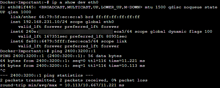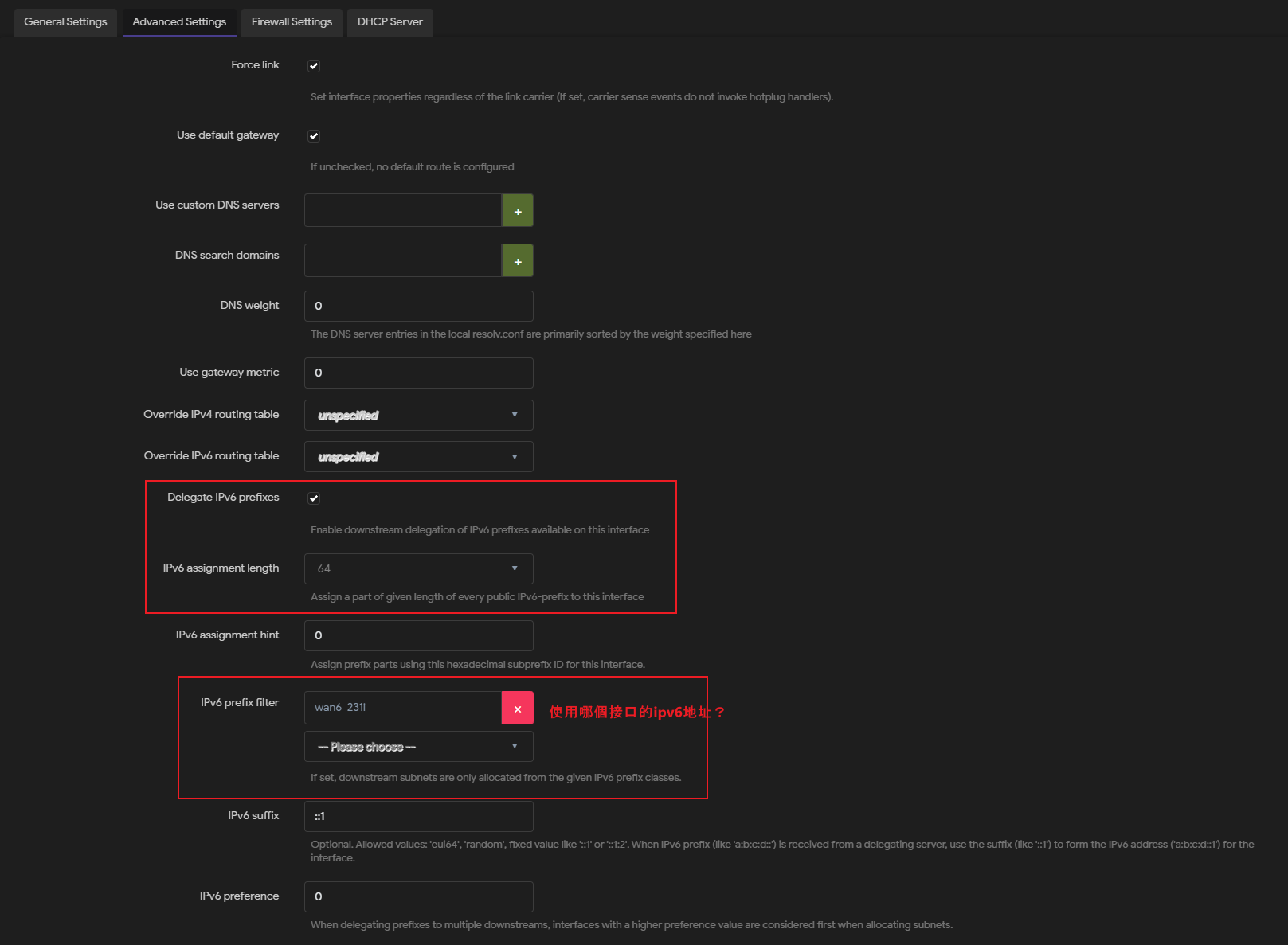 事實上運營商一般給的都是 /60 的,也就是說最大 64 - 60 = 4,2^4 = 16 個網段,但由於使用DHCPv6 只能獲取到一個網段,但是我有3個網段。