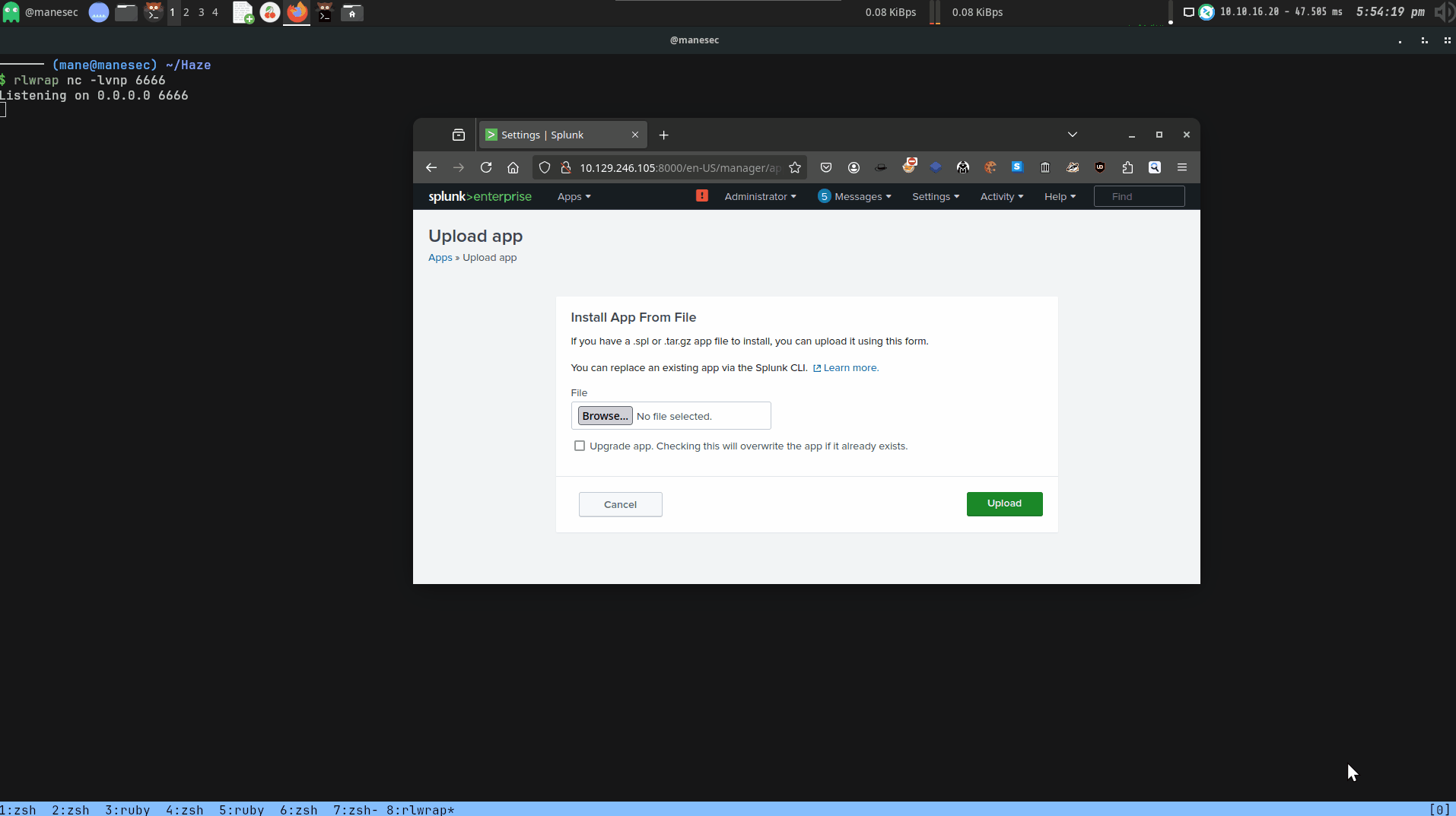 這時候就立馬彈出一個shell。在這裏我沒有重啓過 splunk 。