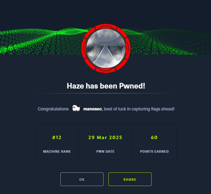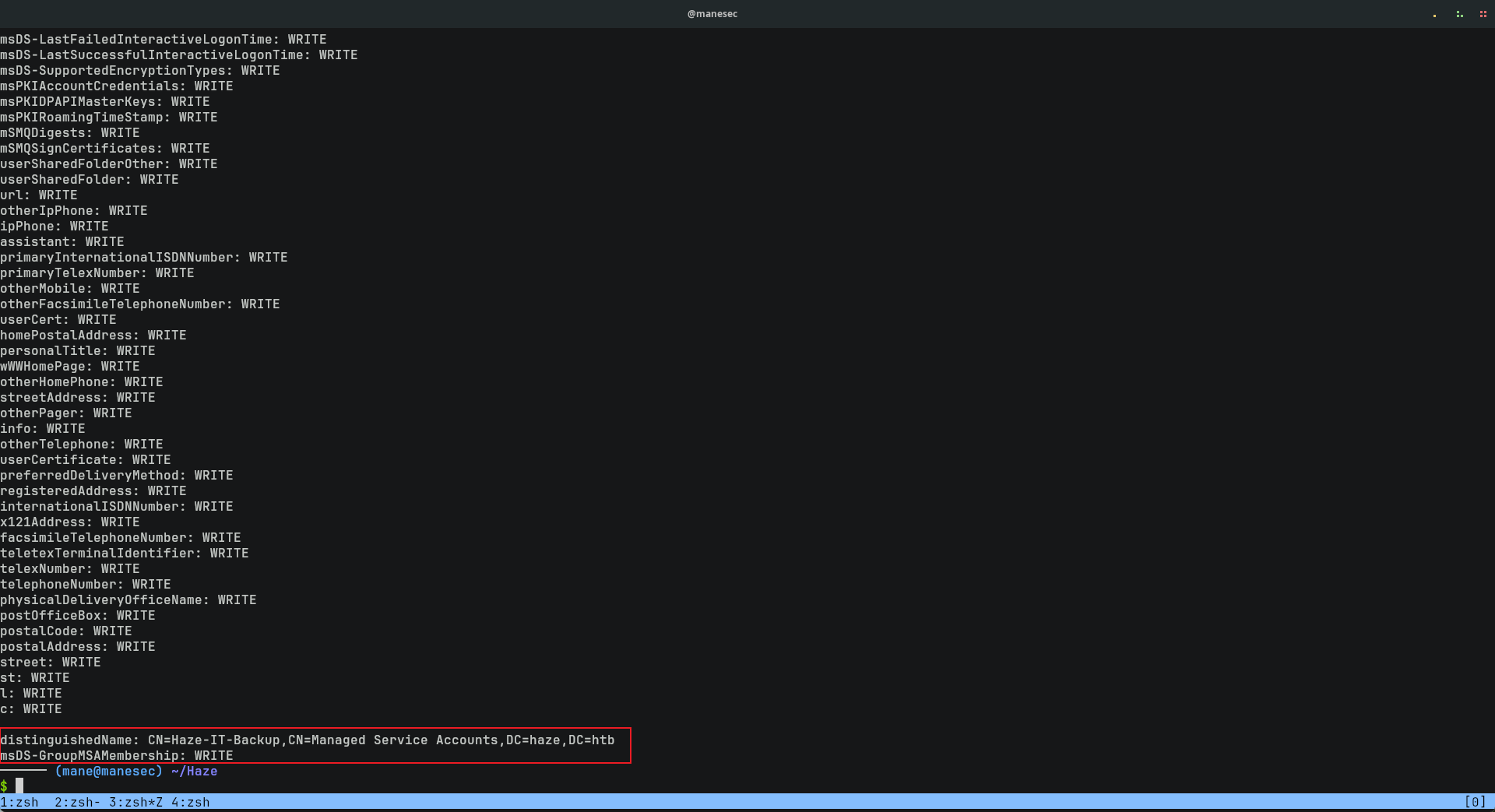 3268/tcp open ldap syn-ack ttl 127 Microsoft Windows Active Directory LDAP (Domain: haze.htb0., Site: Default-First-Site-Name)