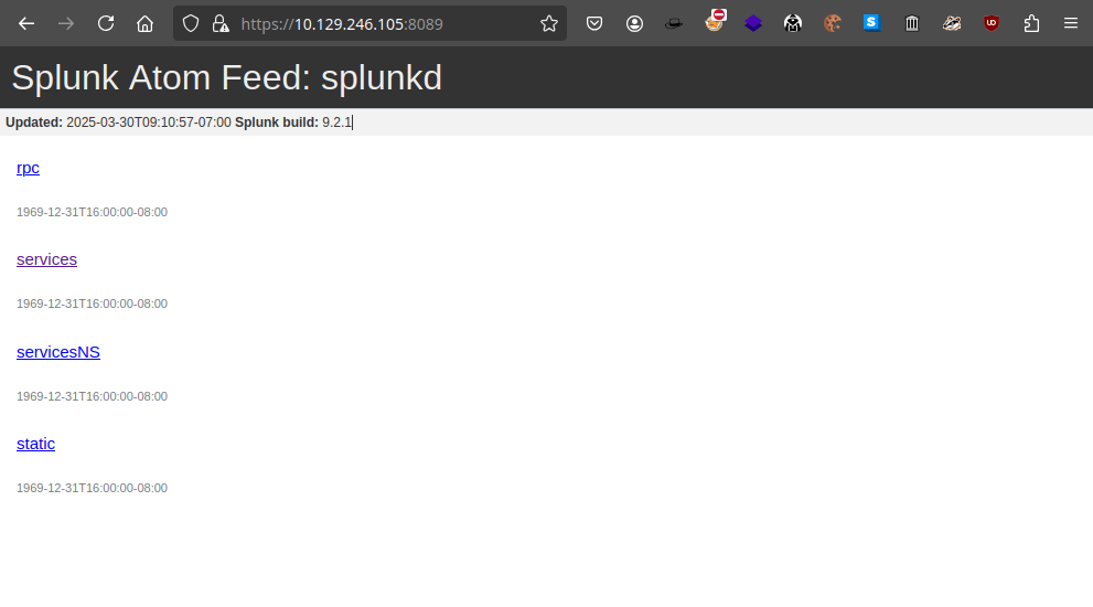 8089/tcp open ssl/http syn-ack ttl 127 Splunkd httpd
