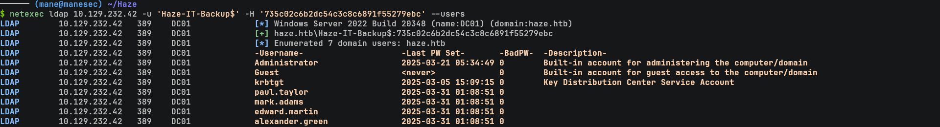 Haze-IT-Backup$:1111:aad3b435b51404eeaad3b435b51404ee:735c02c6b2dc54c3c8c6891f55279ebc:::