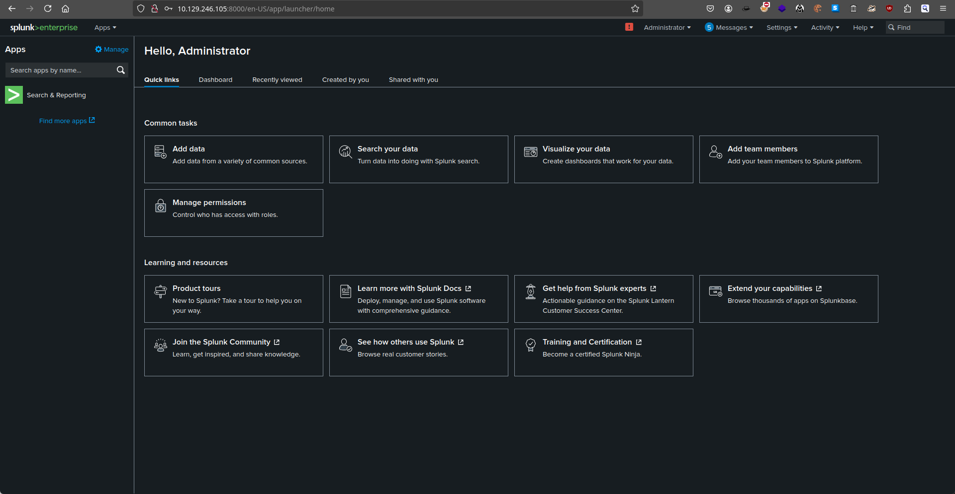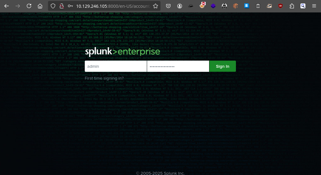 8000/tcp open http syn-ack ttl 127 Splunkd httpd