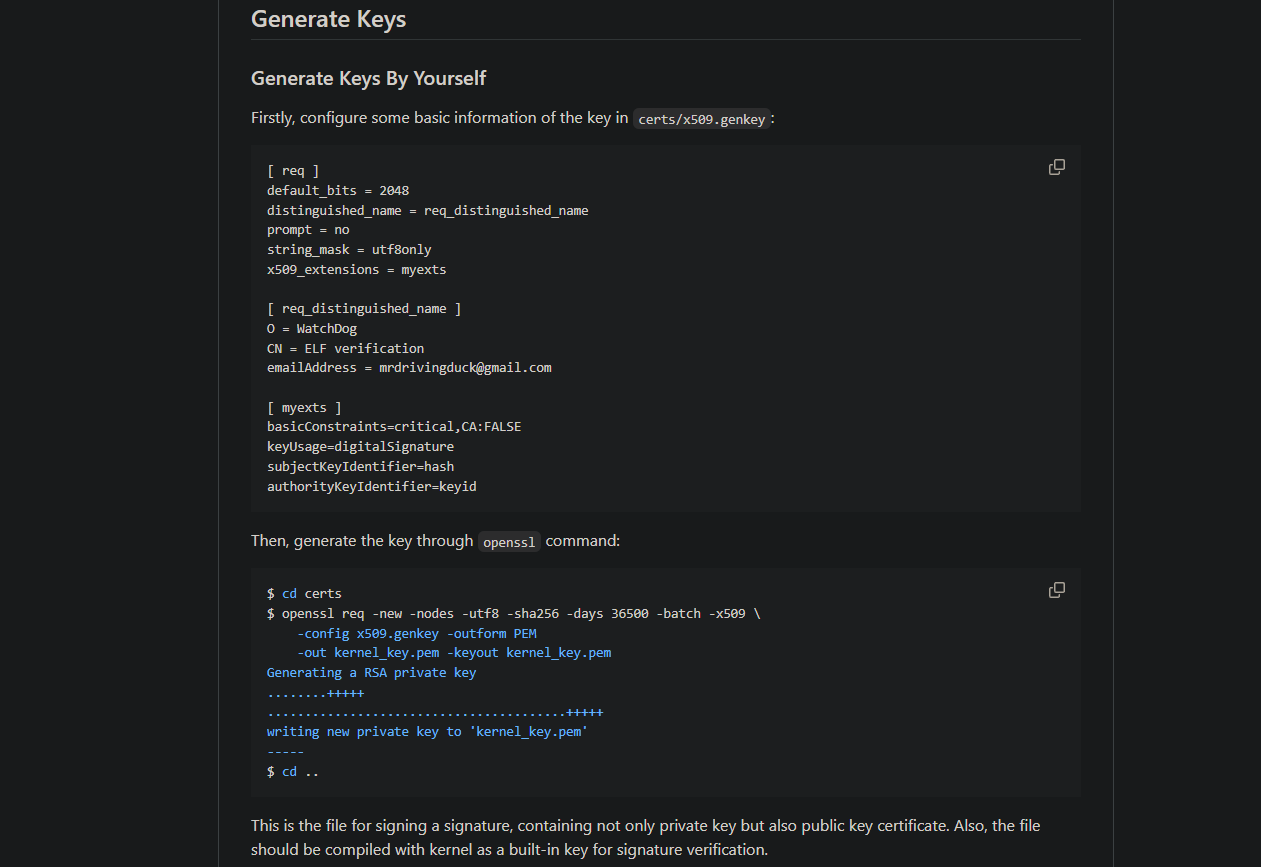 $ git clone https://github.com/NUAA-WatchDog/linux-elf-binary-signer