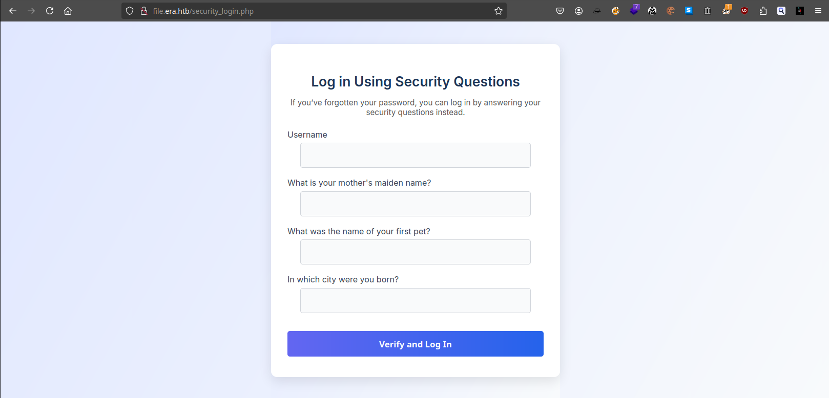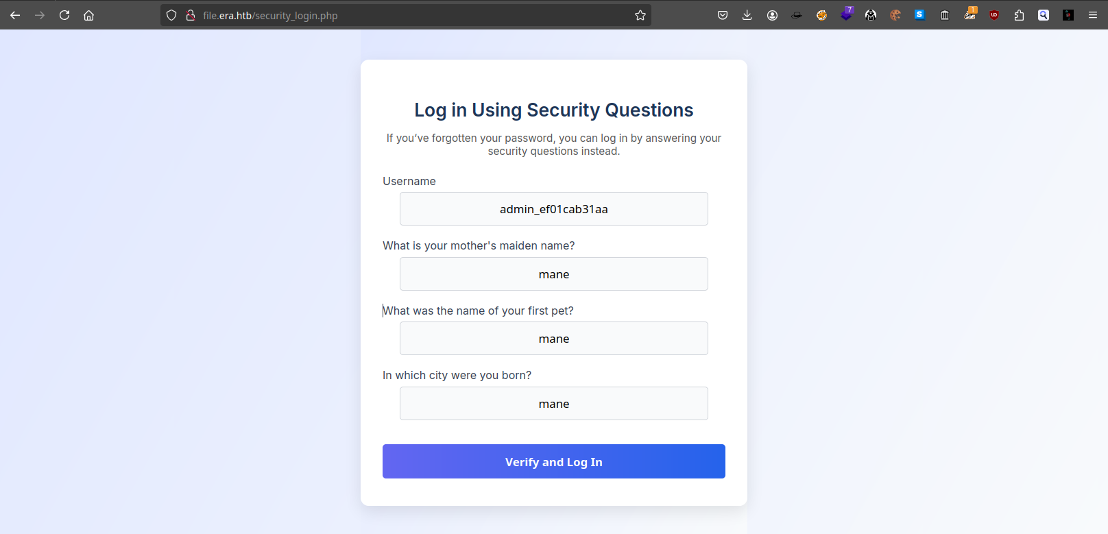 下面的 login using security questions 會跳轉到: