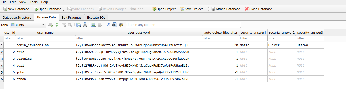 另外發現裏面有一個數據庫文件 filedb.sqlite在裏面,所以嘗試使用 sqlitebrowser 打開: