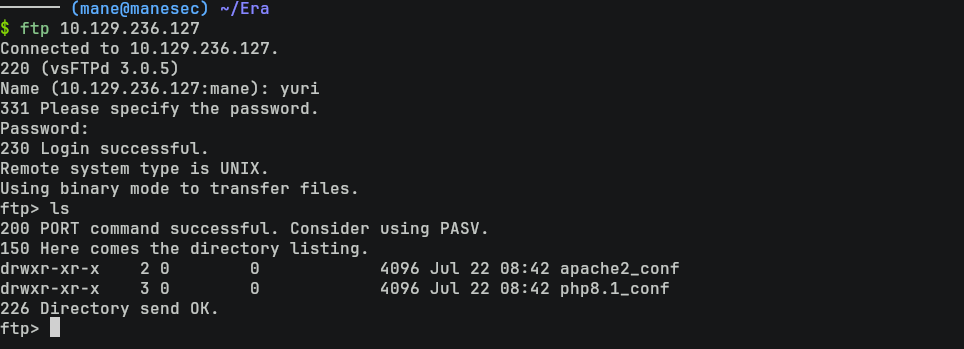 $ ftp 10.129.236.127 yuri