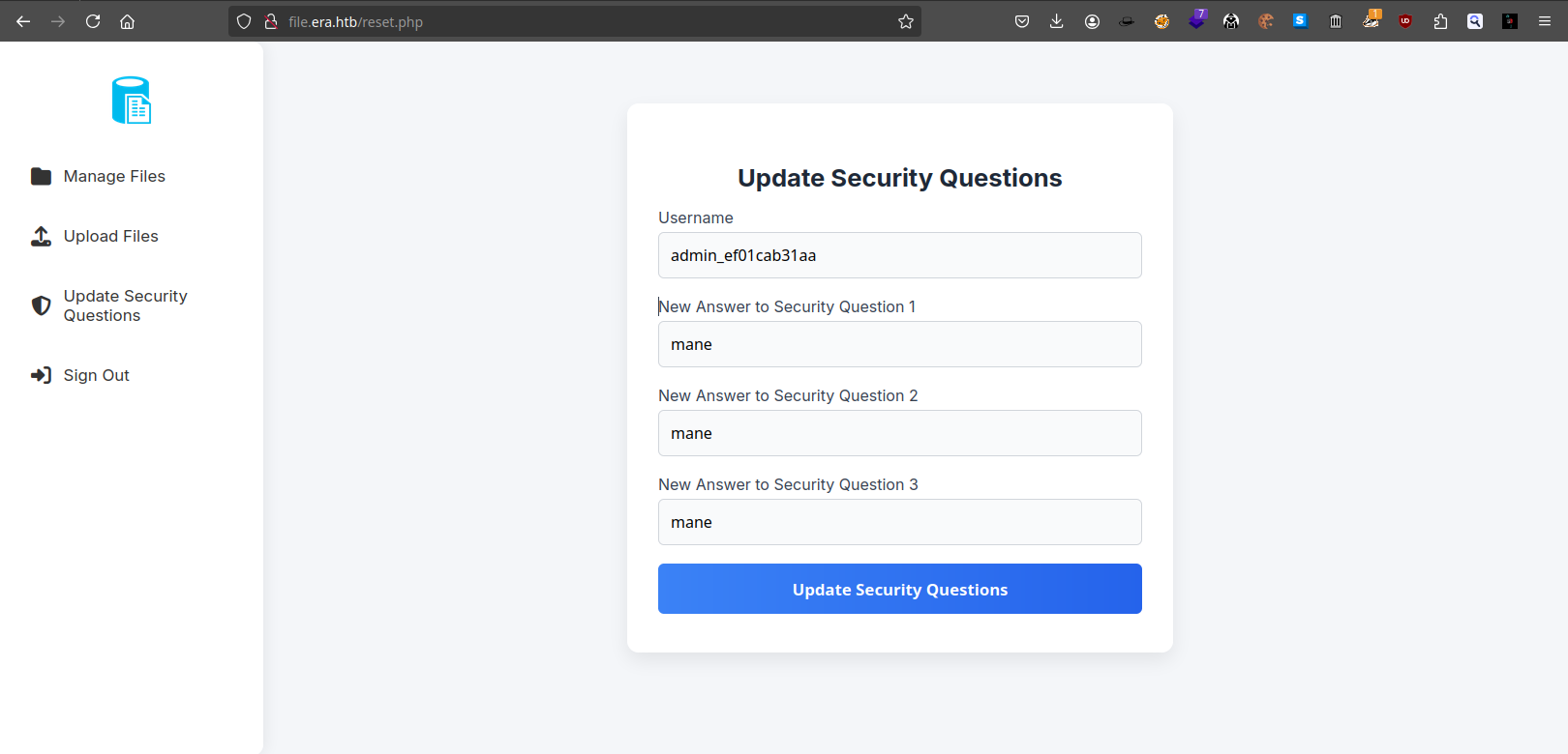 所以嘗試修改管理員的安全問題,用戶名是admin_ef01cab31aa: