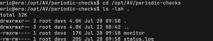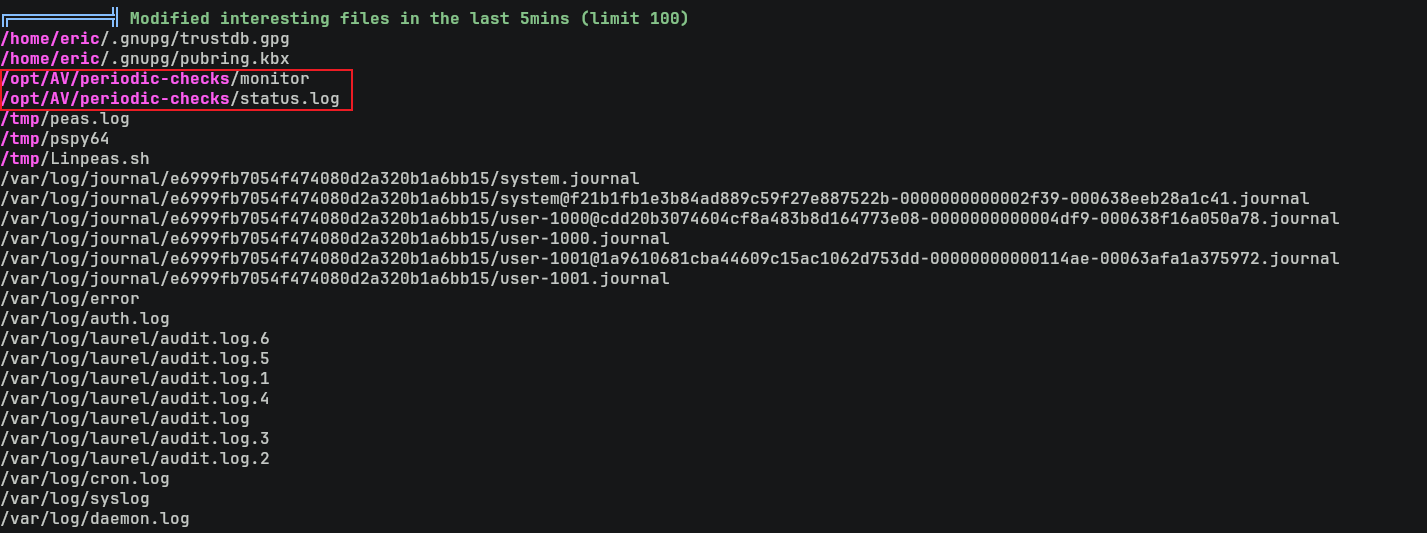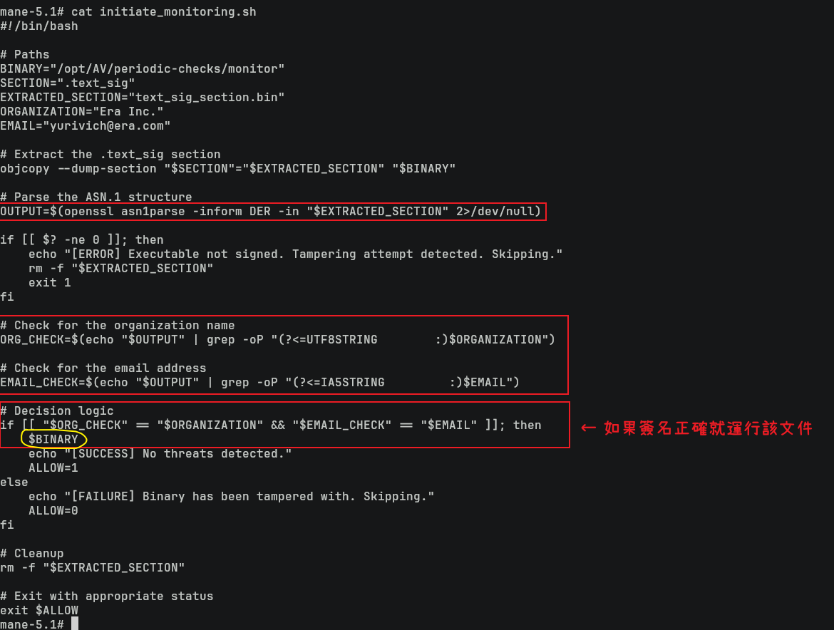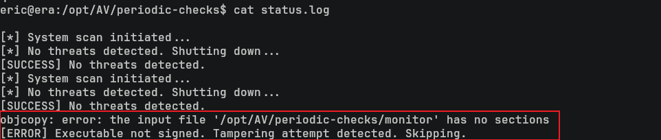 從原本的 /opt/AV/periodic-checks/monitor 也可以看到確實有兩個字串在程序裏面。