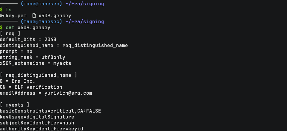 從pspy的結果中,不難猜到他只會檢查 Era Inc 和 yurivich@era.com,而不會檢查裏面的 public key,所以可以自己製作一個證書。